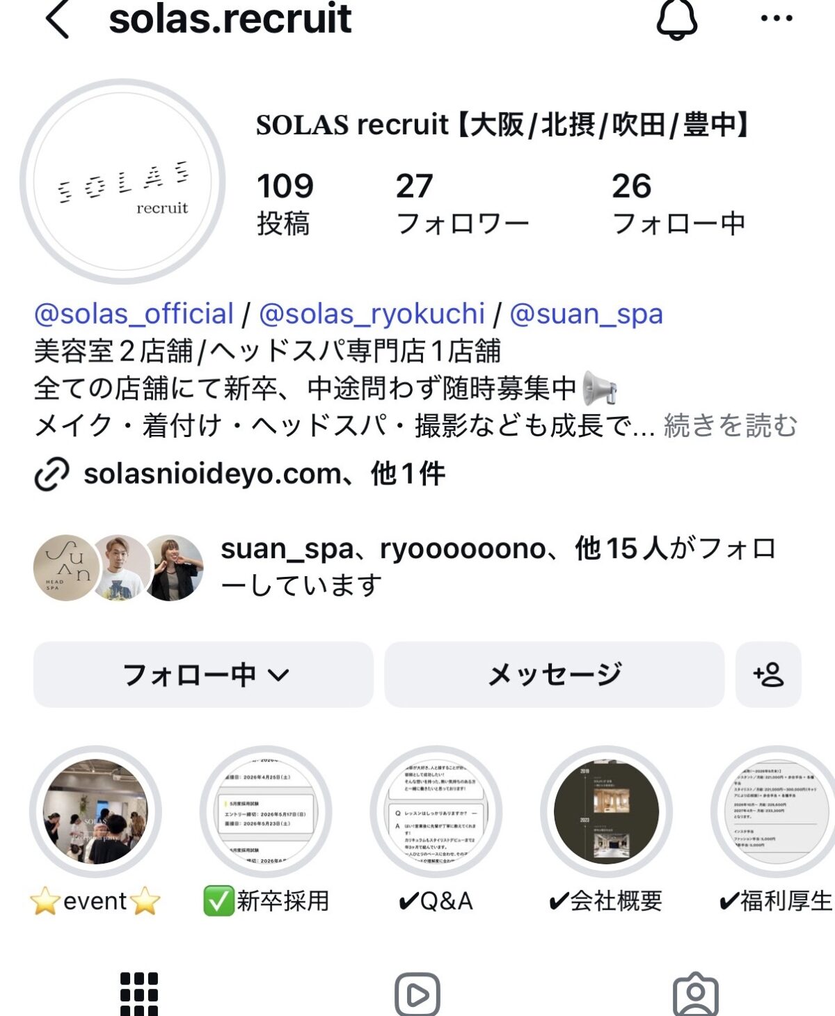 ソラスにおいでよ! 吹田市千里山にあるヘアサロンSOLAS採用サイト