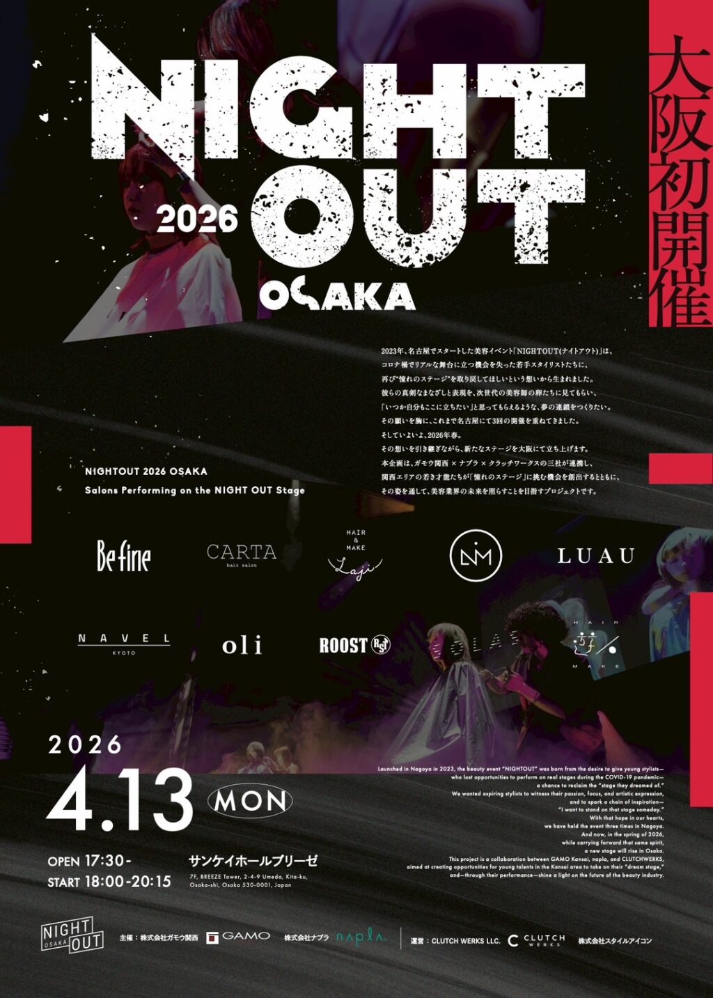 名古屋で行われていたNIGHT OUTが大阪で初めて開催され、SOLASが関西を牽引するトップ10のサロンに選んで頂きました✨